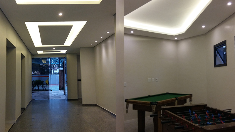 Todos os ambientes receberam as intervenções de pintura, forro, iluminação, sanca iluminada e troca de pisos e revestimentos.